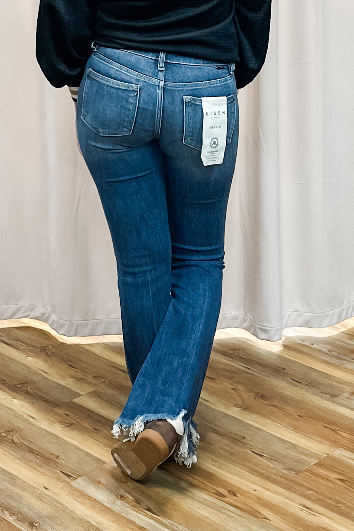 Classic flare jeans with a frayed destroyed hem from Risen Jeans.