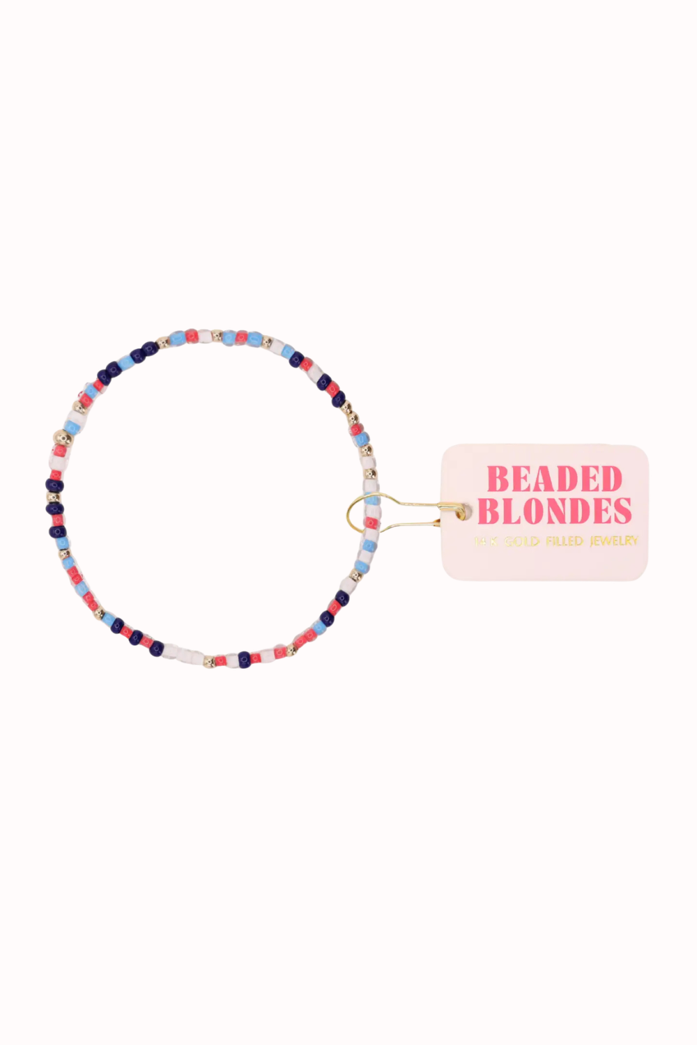 This spring sprinkle bracelet is a mix of 2.5mm & Red, White & Blue Clear czech glass beads. The pattern varies on each bracelet making it unique.