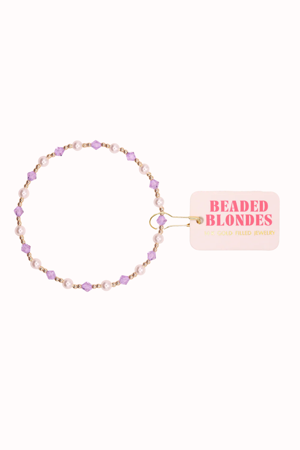 Beaded Blondes waterproof, sweat proof and generally life proof bracelets are here! This is a mix of 2mm 14K gold filled beads, 4mm synthetic pearls and light purple swarovski beads. Such a pretty and feminine bracelet. Perfect for anyone who loves purple. Add to an existing stack or start your own signature look with this lovely bracelet. Available in 2 sizes.