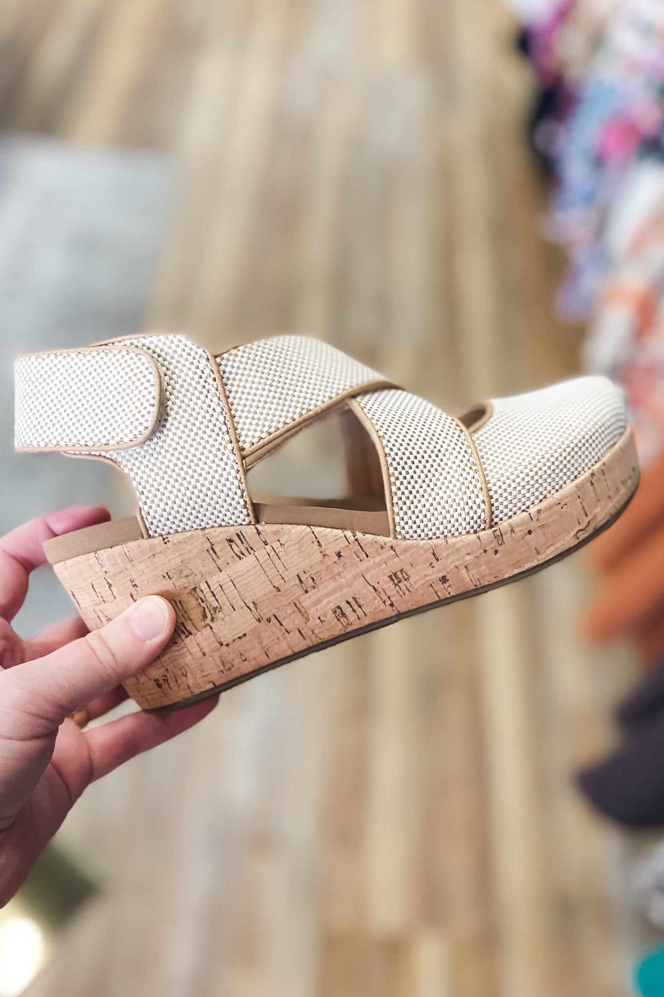Featuring a closed toe style (ahem - you won't have to worry about your pedicure) with criss cross straps and wrap around velcro closure - so easy to put on and take off. A 2.5" wedge heel with a 1" platform and the cushioned memory foam insole for all day comfort!