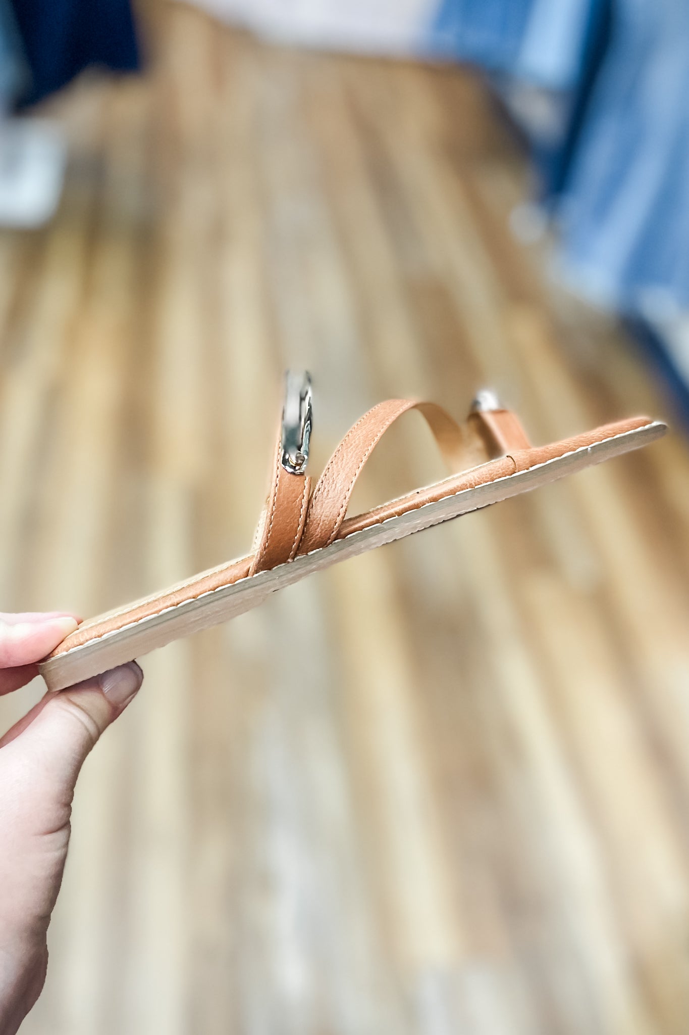 Corkys Dirty Looks flat dressy sandal with a minimalist design featuring a gold embellished toe ring. The cognac brown thin straps with gold detail make it a neutral shoe that will coordinate with just about everything.