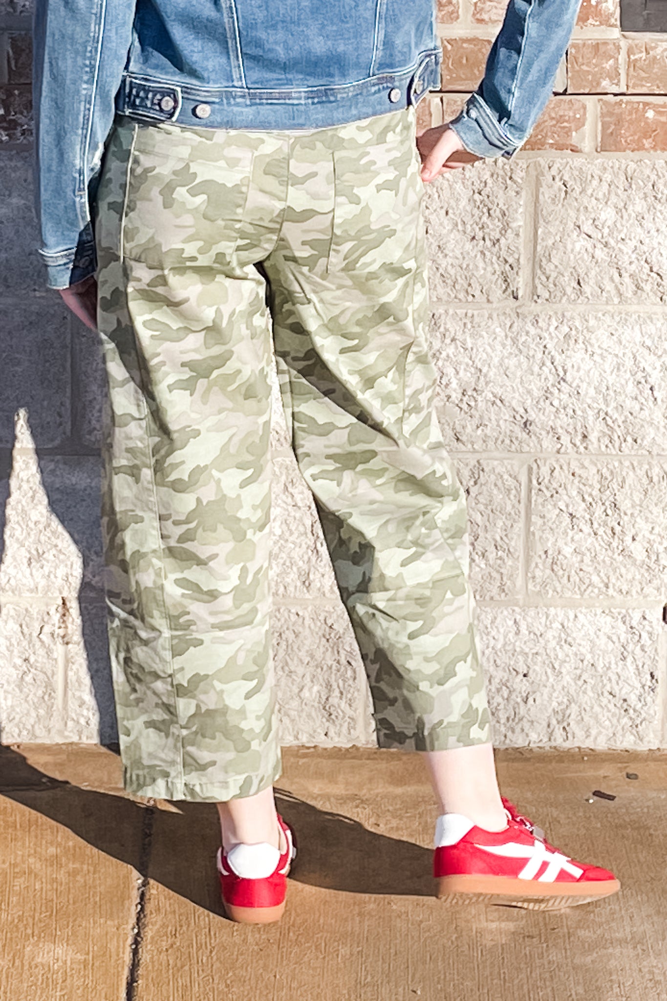 Styling Tips: Camo - while never really out of style - is having a real moment. If you've been wanting to jump on the trend here's a pant that's utilitarian and stylish! Camo is a neutral, so you can pair it with coordinating colors like a light olive green. But we love a red and camo statement. Grab a long sleeve top for cool temps even layering a denim jacket and don't forget the red suede sneakers to complete the look! Once the weather warms up, we recommend pairing with a fun graphic tee!