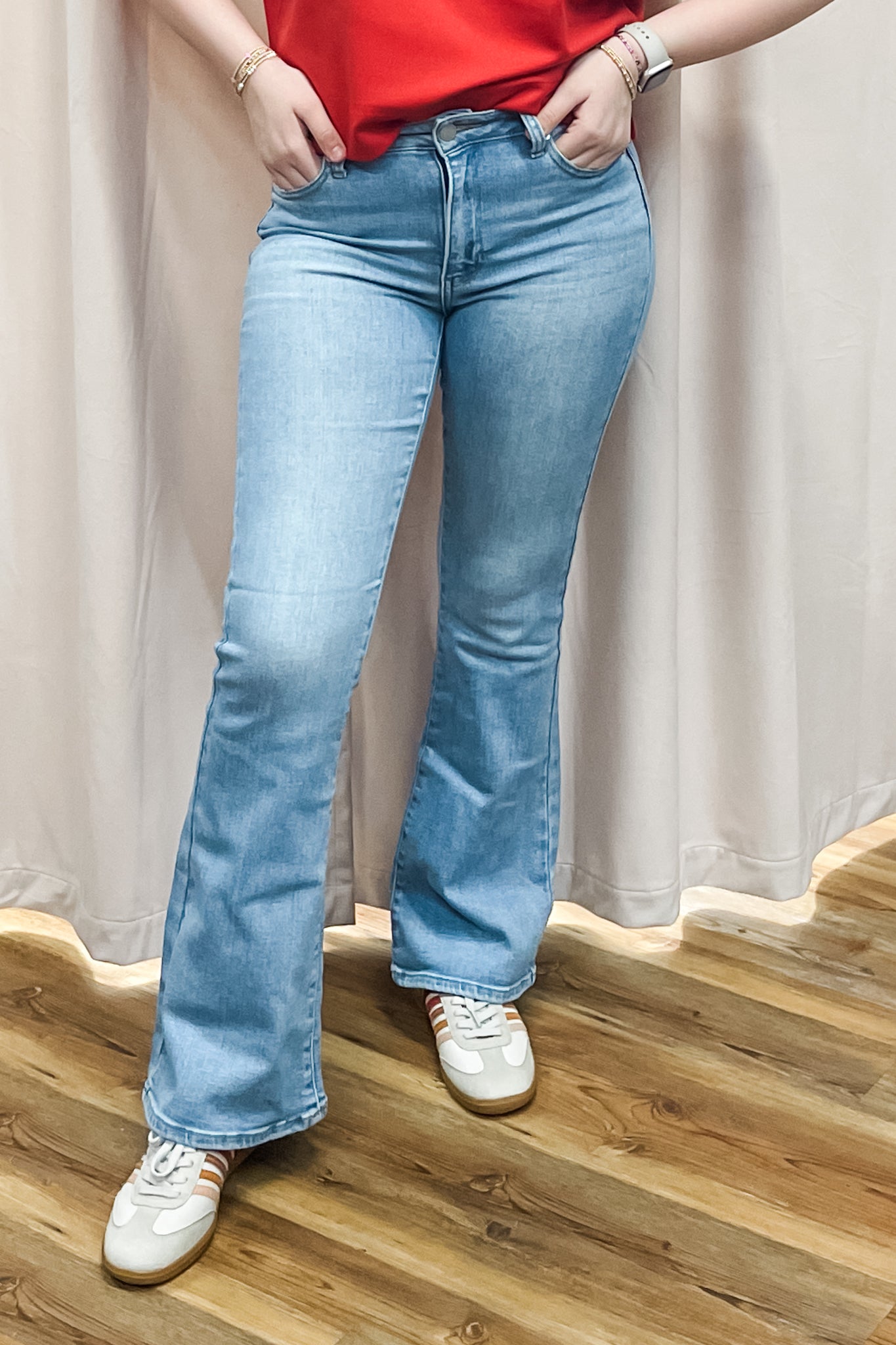 Styling Tips: I love to pair bright, colorful tops with light wash jeans. With the shorter inseam on these, they look great with low top fashion sneakers like the Stevie from ShuShop. Or if you're petite, add a small wedge!