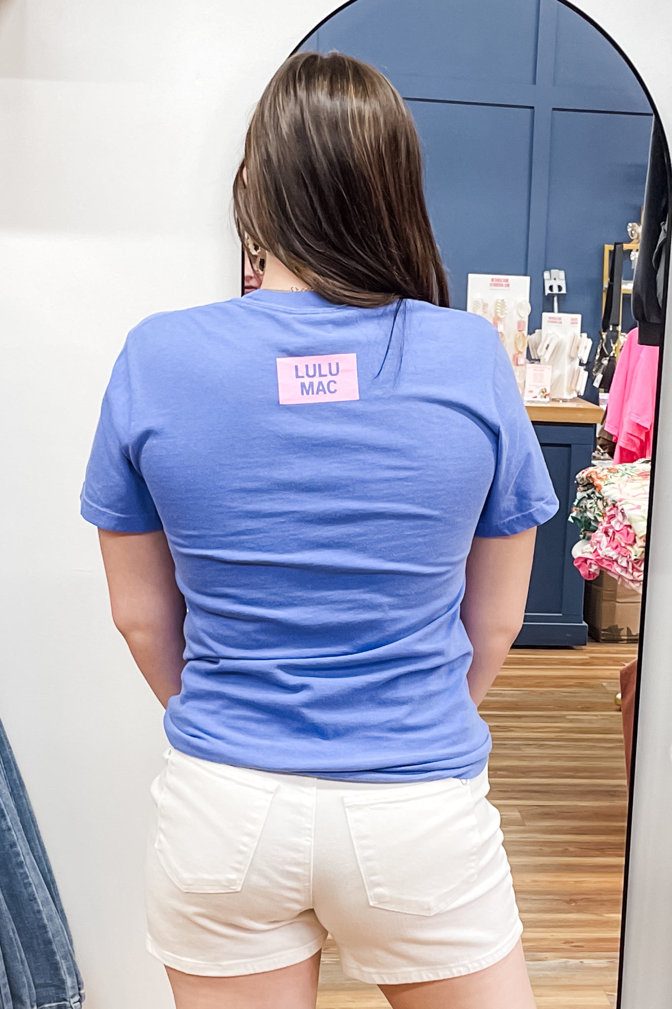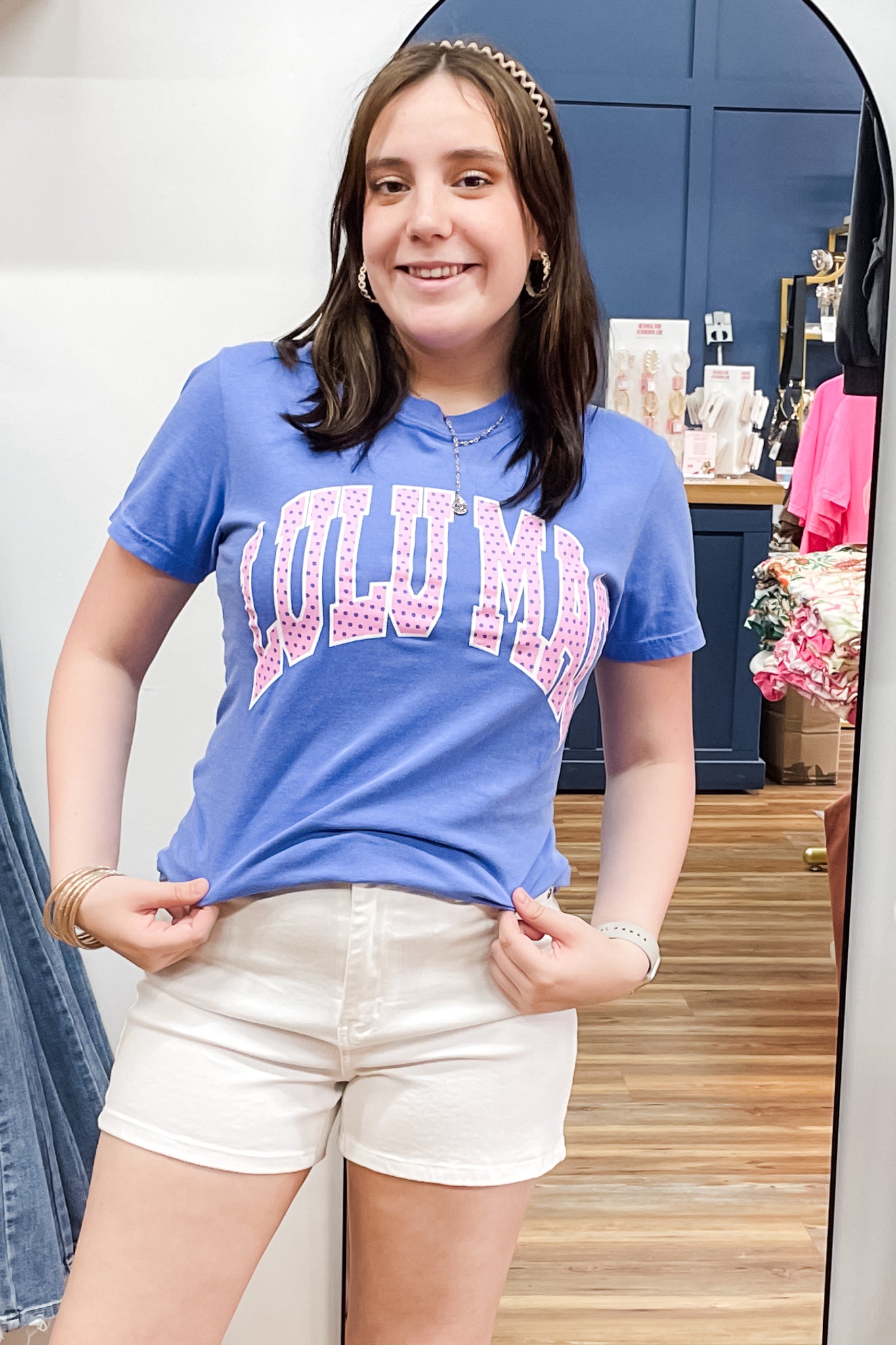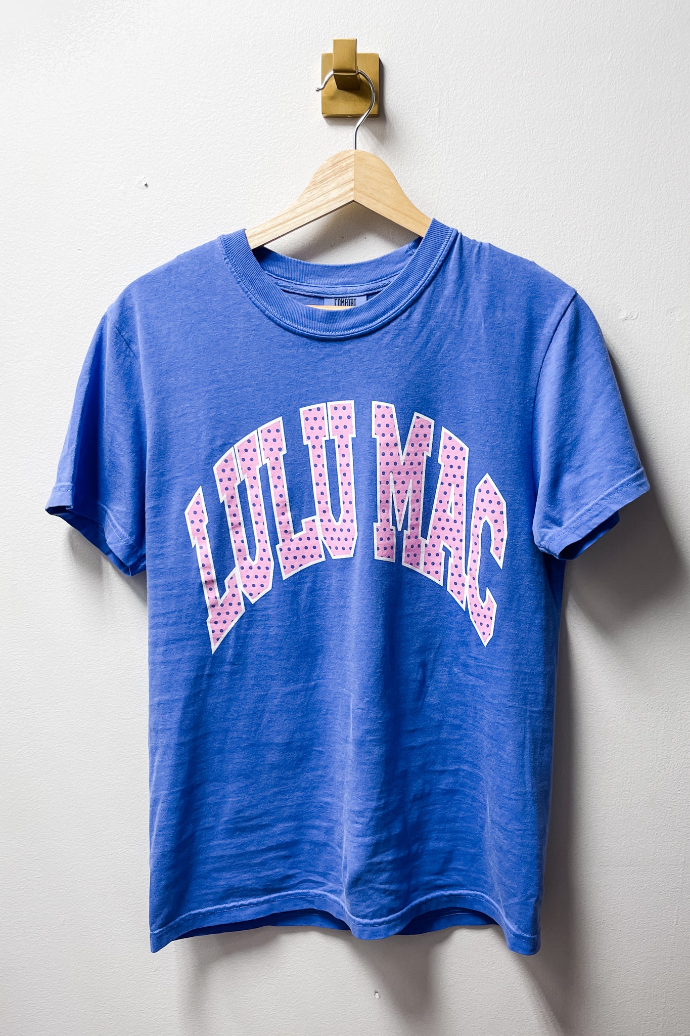 Tee shirts from Lulu Mac, available in 4 colors! Choose from a neon pink with light pink polka dotted lettering, a butter yellow with blue polka dotted lettering, chalky mint with pink polka dotted lettering and flo blue with pink polka dotted lettering. Snag one for yourself or that young lady who loves everything Lulu Mac! Perfect addition to her Easter basket!