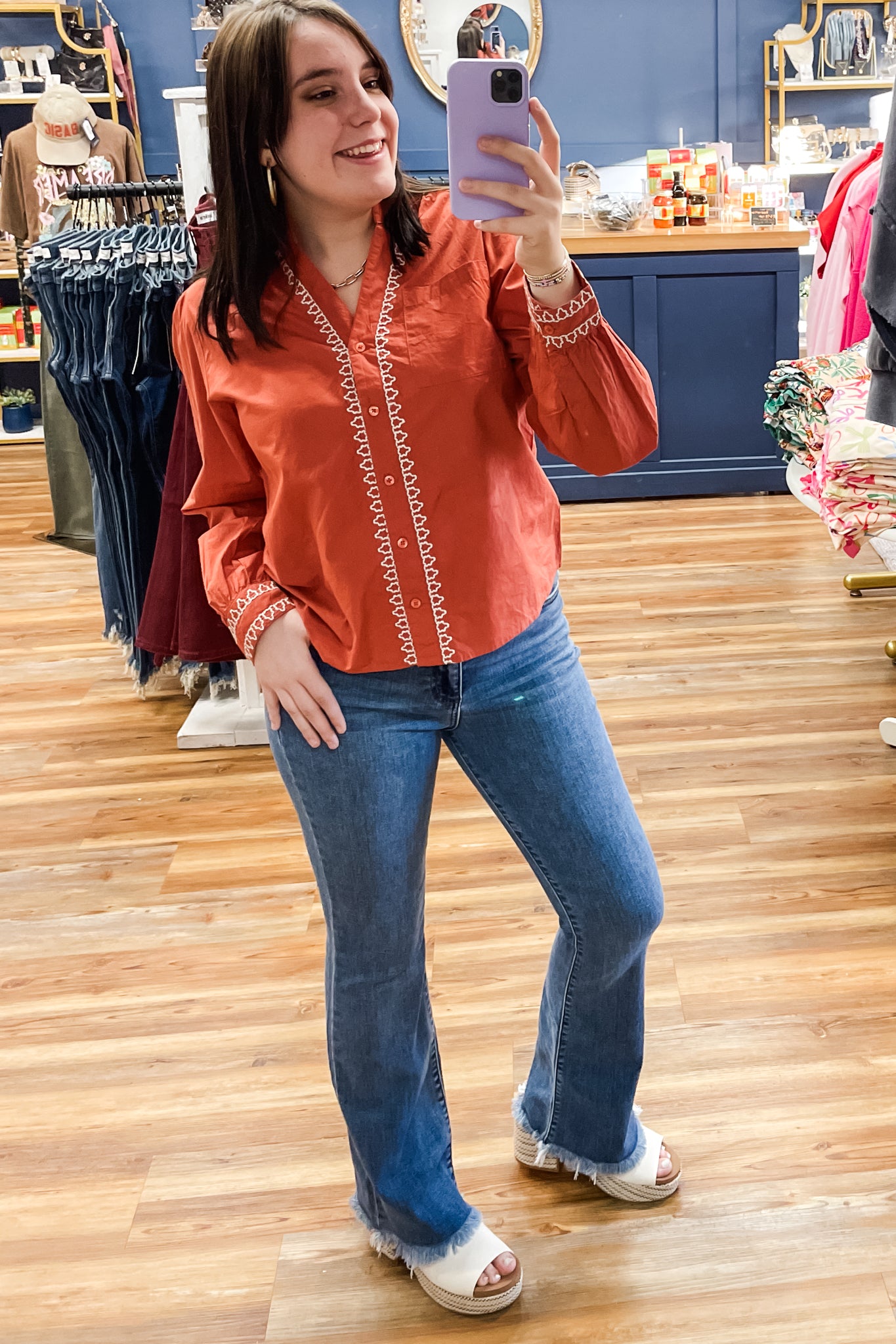 A quintessential fall button up shirt from THML will be a staple for you this season. Perfect for those friendsgivings, Thanksgiving, fall family pictures and even just a great blouse to wear for everyday in the classroom or office.